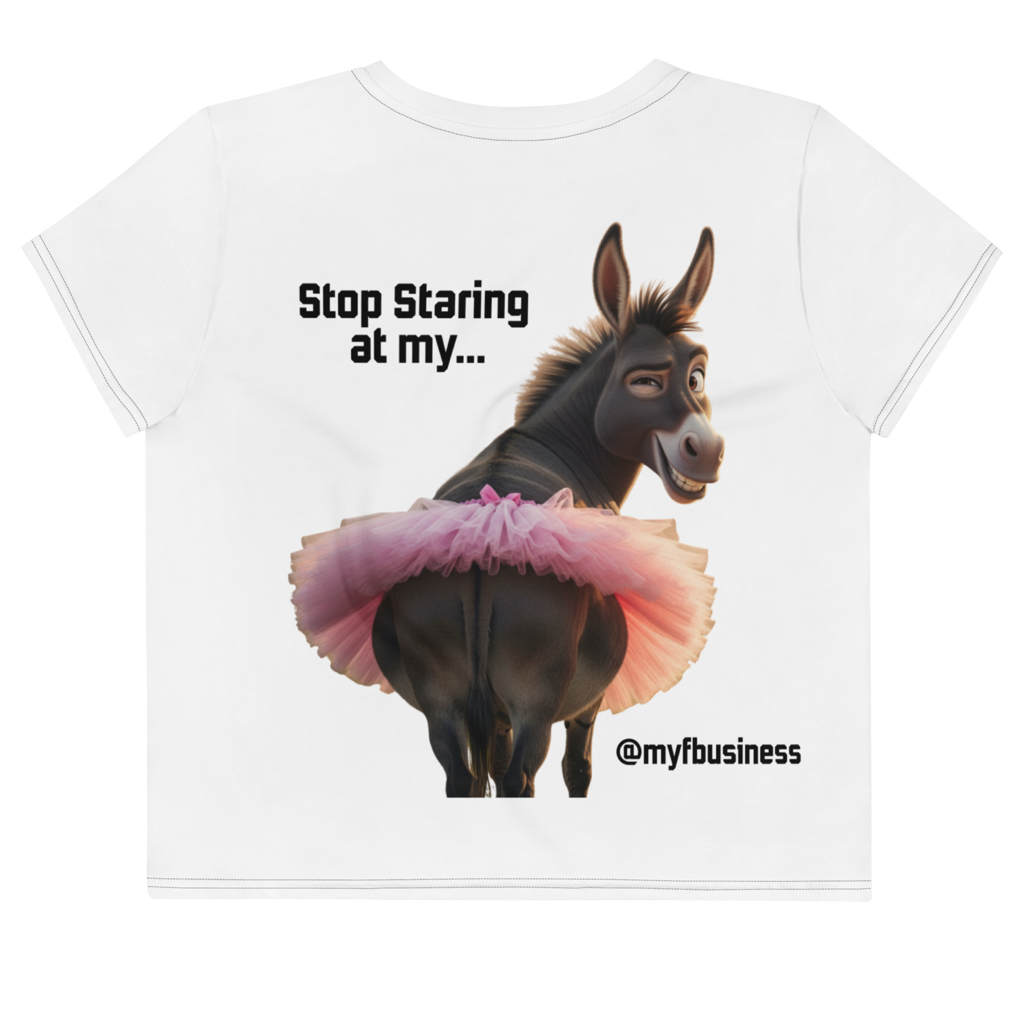 This crop tee is custom-cut and sewn to hit every curve just right, making sure this figure looks exactly as good as it feels. The original, bold all-over design is the main event and absolutely worth showing off. Yes, it's meant to be adored, but this is a look of confidence, not an invitation.